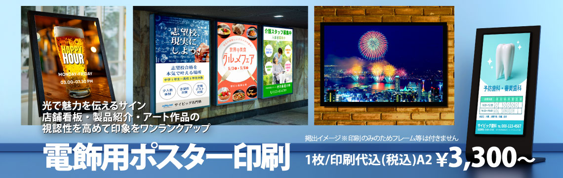サイビッグネットは、スタジオアリス グループ の株式会社JVIS が提供する大判印刷サービスです。お客様のお手持ちの原稿(データ形式)から、大型ポスター印刷、展示パネル製作、写真パネル印刷、タペストリー製作(屋内・屋外)、スタンドバナー製作 を、1枚から承ります。