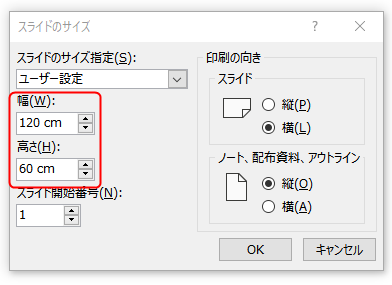 ここでサイズを幅120cm・高さ60cmに設定します。